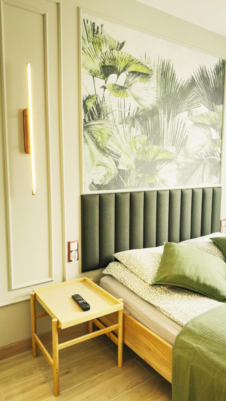 Oferta apartamentu obejmuje sypialnię (1), salon, aneks kuchenny z pełnym wyposażeniem, w tym lodówką i ekspresem do kawy, a także łazienkę (1) z prysznicem oraz suszarką do włosów. W apartamencie zapewniono ręczniki i pościel.