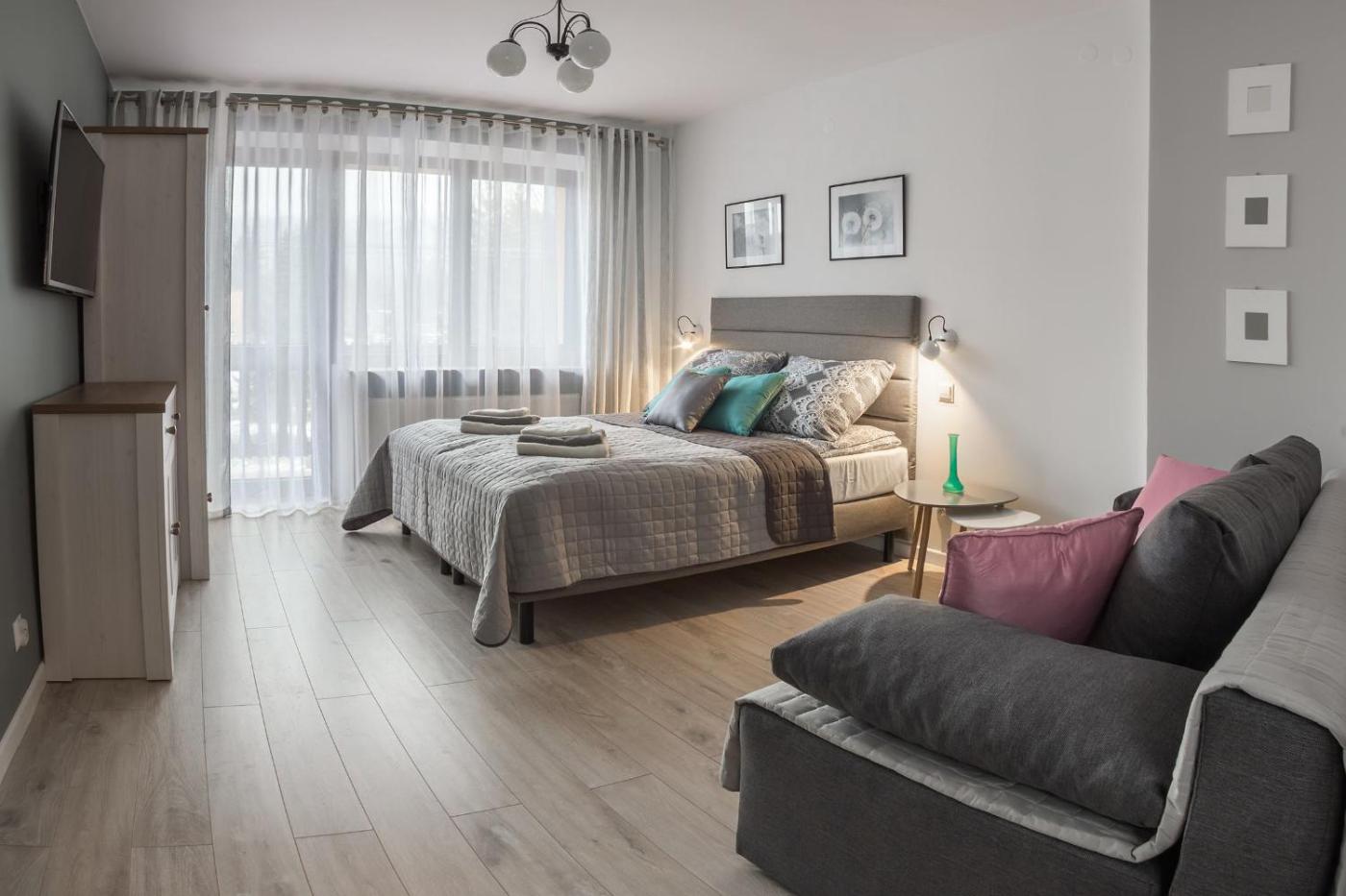 Apartament typu studio. The apartment features 2 separate bedrooms and 1 bathroom with a shower and a hairdryer. Featuring a balcony with garden views, this apartment also provides a tea and coffee maker and a flat-screen TV. The unit offers 2 beds. Apartament - 4 osobowy. Powierzchnia pokoju ok.: 36 mkw. ;