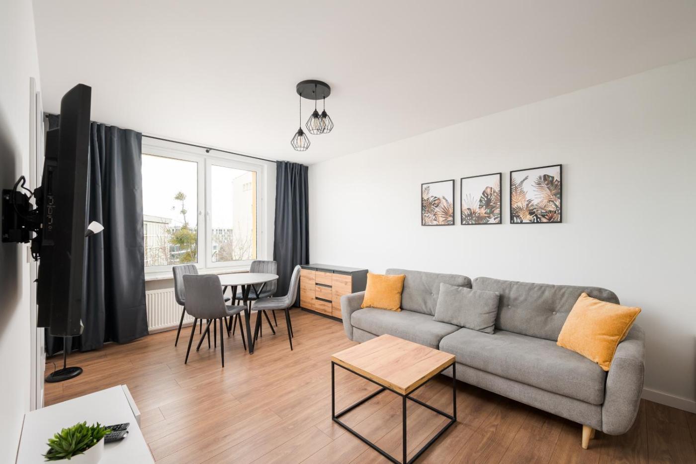 Apartament z 1 sypialnią. Boasting a private entrance, this apartment comes with 1 living room, 1 separate bedroom and 1 bathroom with a shower and a hairdryer. Meals can be prepared in the well-fitted kitchen, which features a stovetop, a refrigerator, kitchenware and an oven. The apartment features a washing machine, a tea and coffee maker, a seating area, a dining area and a flat-screen TV with satellite channels. The unit has 2 beds. Apartament - 4 osobowy. Powierzchnia pokoju ok.: 37 mkw.